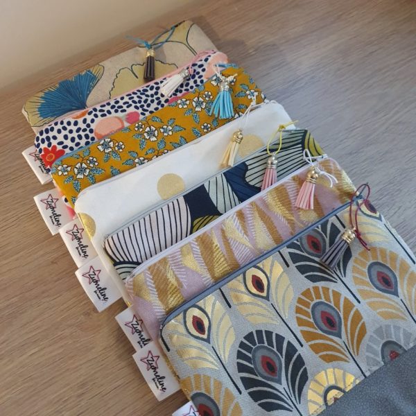 pochette-zippee-zumeline-juvisy-paon-dore-bleu-rose-moutarde-ginko-biloba-fait-main