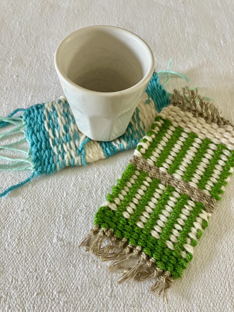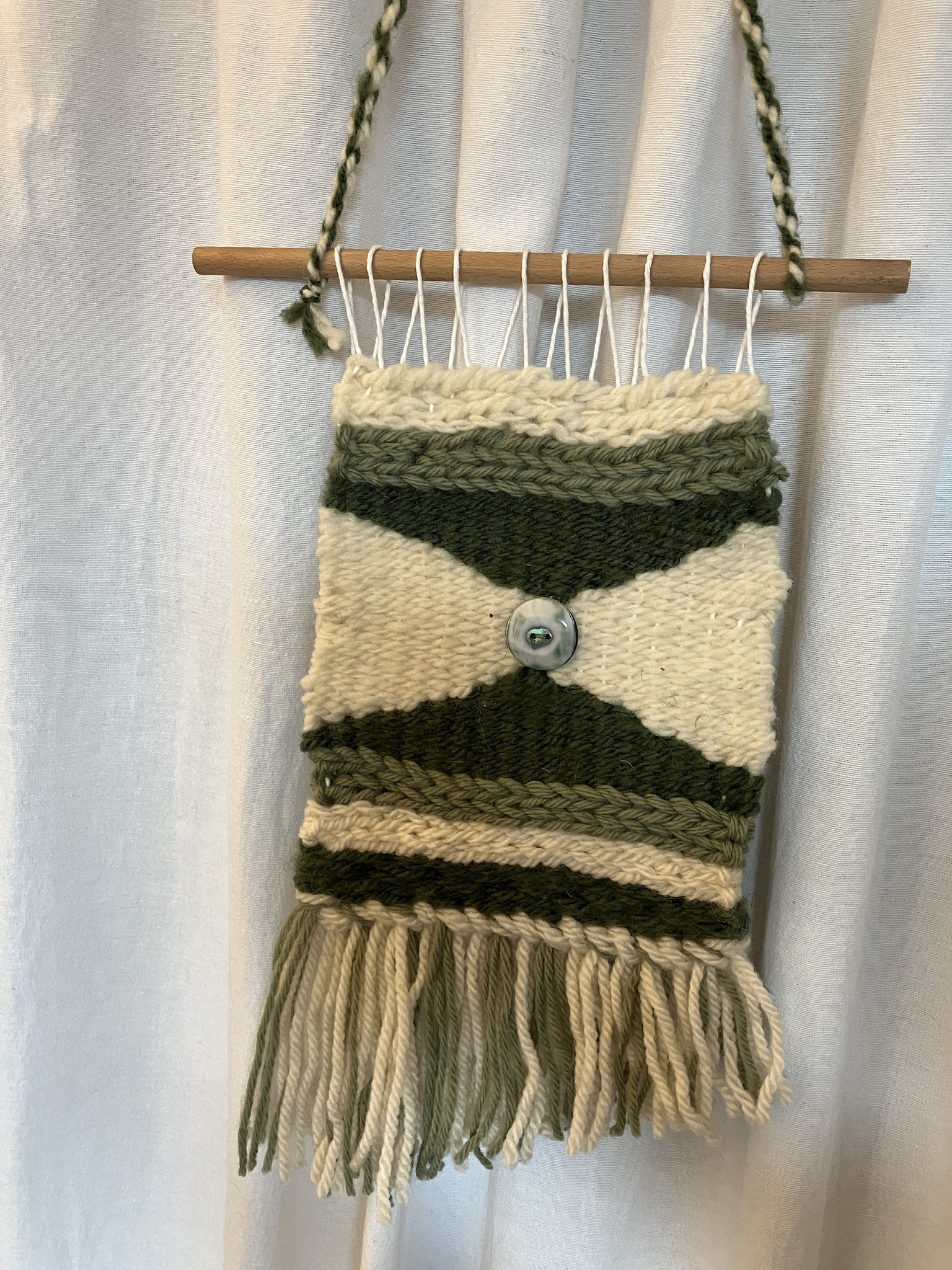 3. Création de Pièces uniques : Mets tes nouvelles compétences en pratique en créant ton propre tissage de laine. Que ce soit un petit tapis, un marque page ou un petit tissage mural, laisse ton imagination te guider dans ta création.