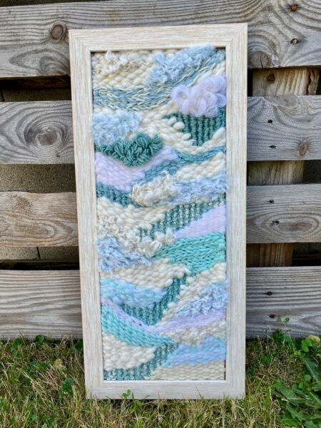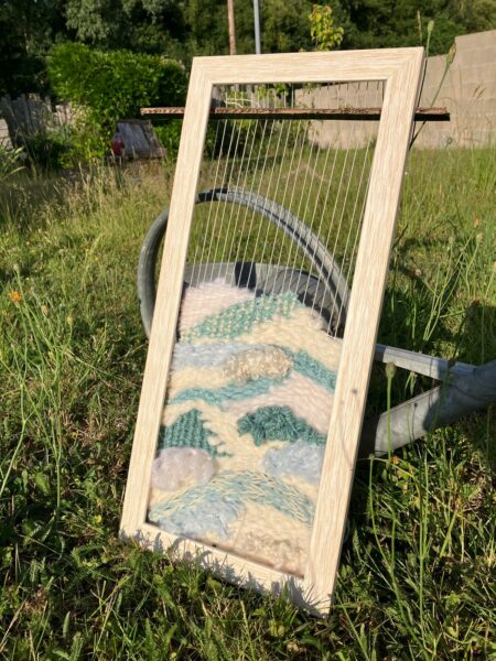 Guidé(e) pas à pas, tu réaliseras ton propre tissage sur cadre, en laissant parler ta créativité jusqu’au rendu final (photo de la pièce terminée).