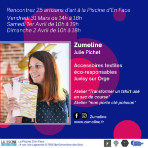 J’animerai pour ma part un atelier de transformation d’un tee shirt en sac de course et une création de porte clés poisson en tissu. Plus d’infos sur les ateliers à venir très prochainement.