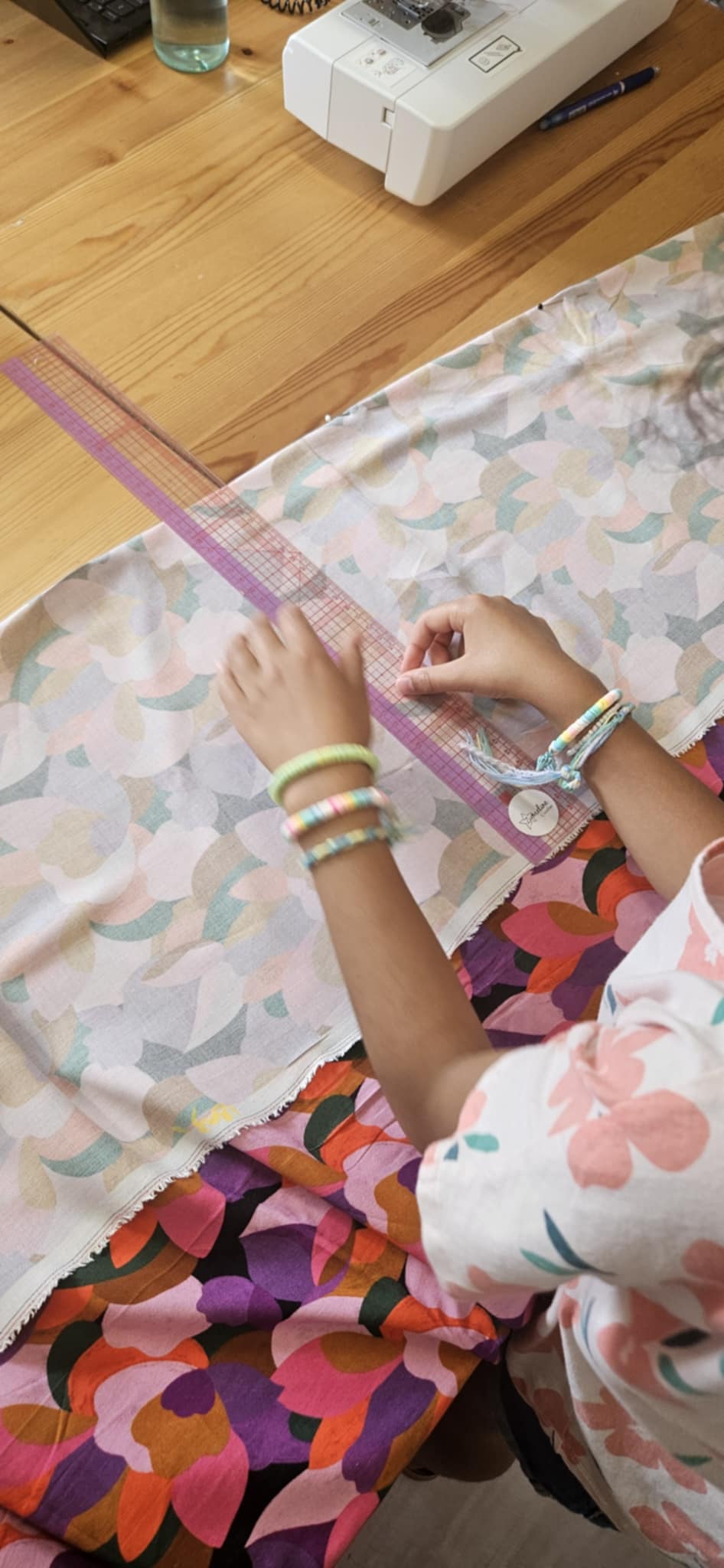 Tout est fourni par mes soins : tissus, accessoires, matériel de couture, papier, crayons,…