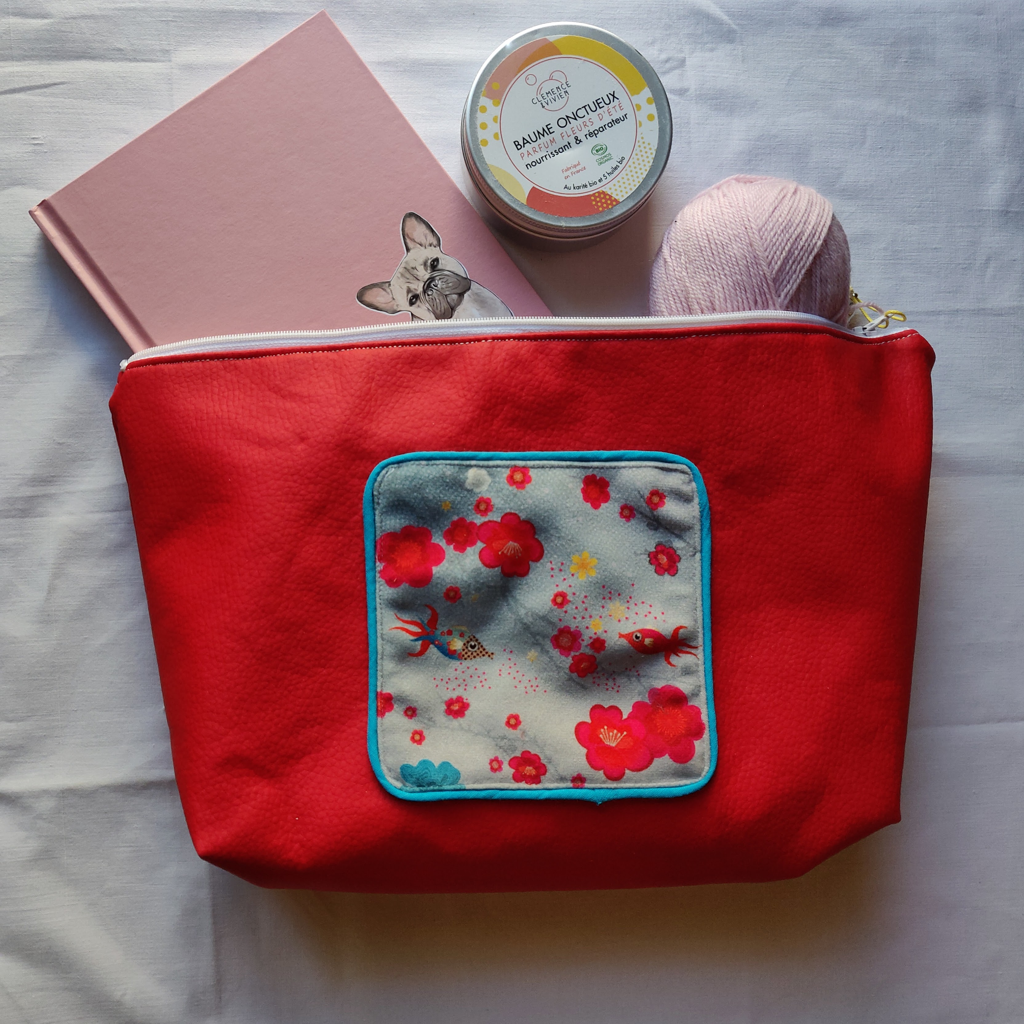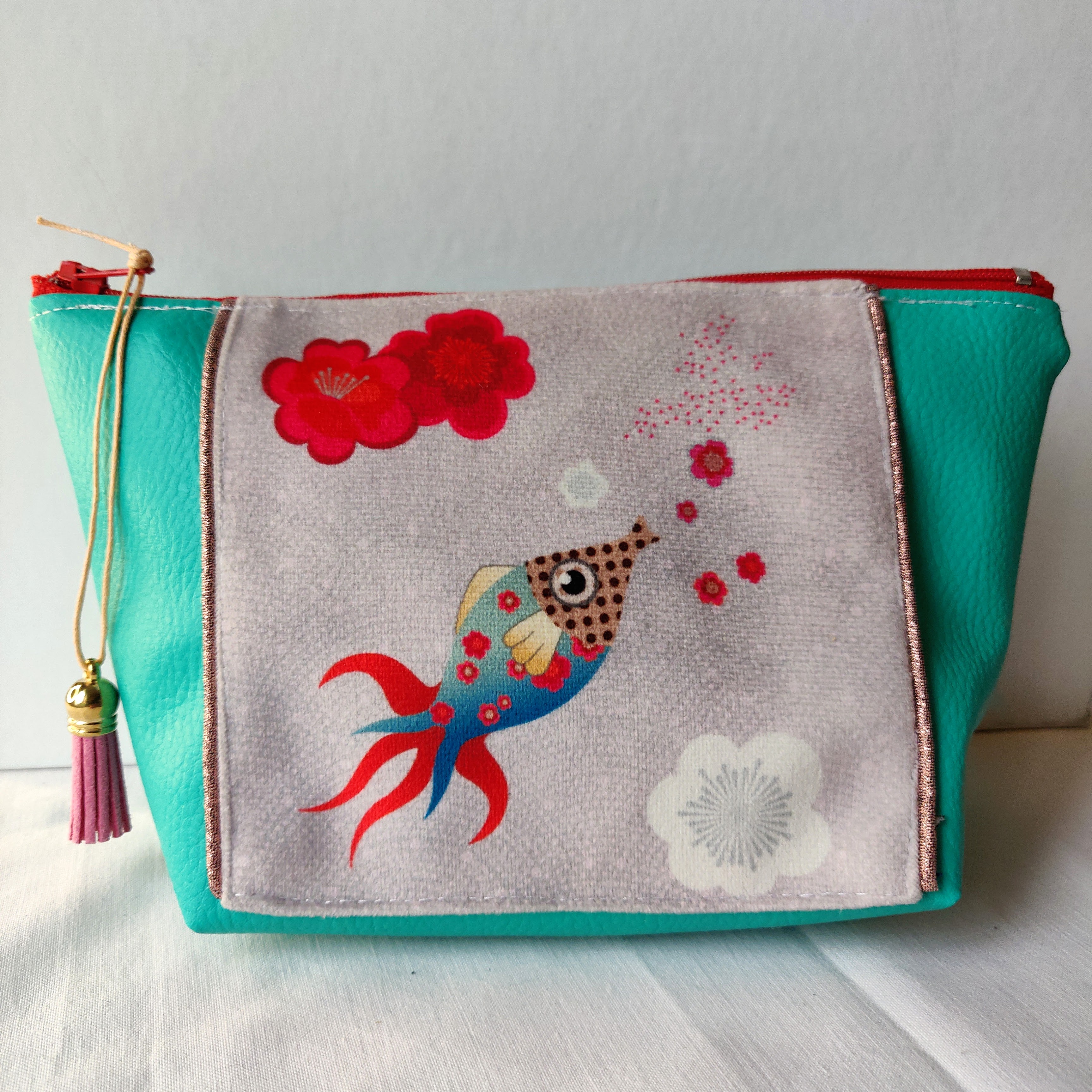 Les trousses de toilette de la collection "petits poissons" sont des trousses uniques et personnalisées avec les jolis coupons NoemiFabrics.