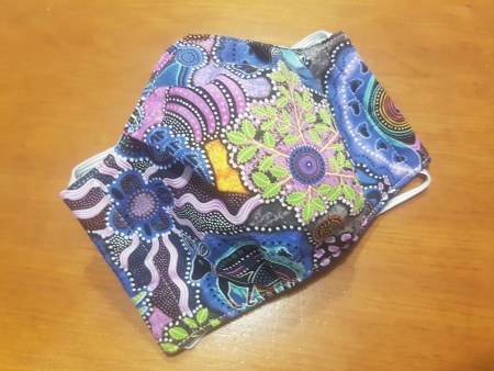 Masque en tissu réalisé selon le tutoriel du CHU de grenoble mais sans couture verticale